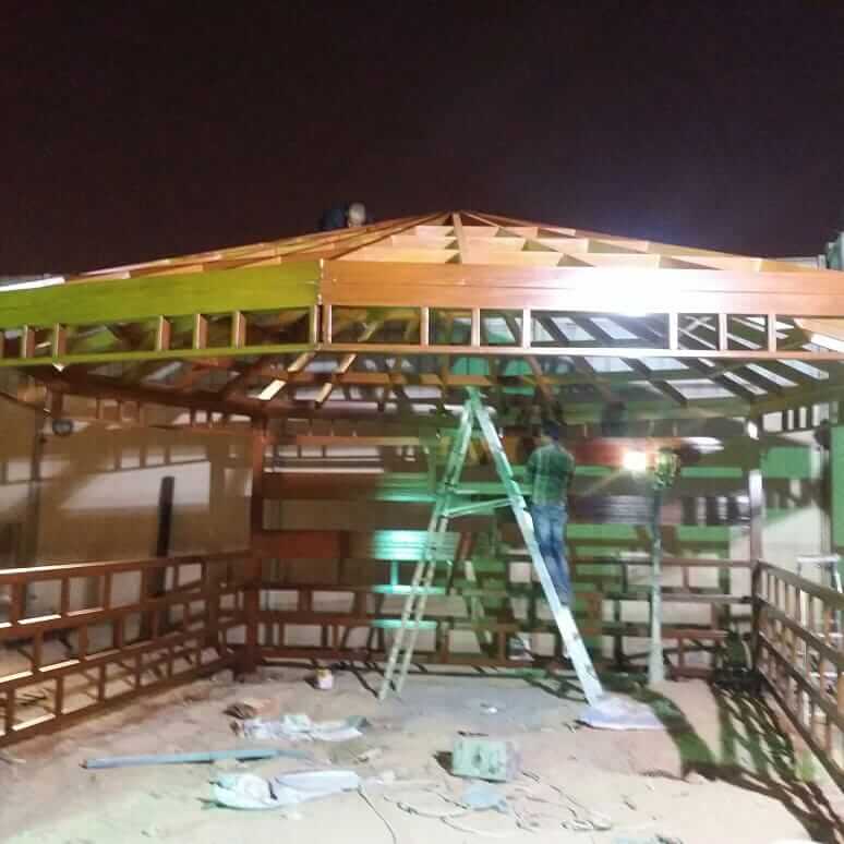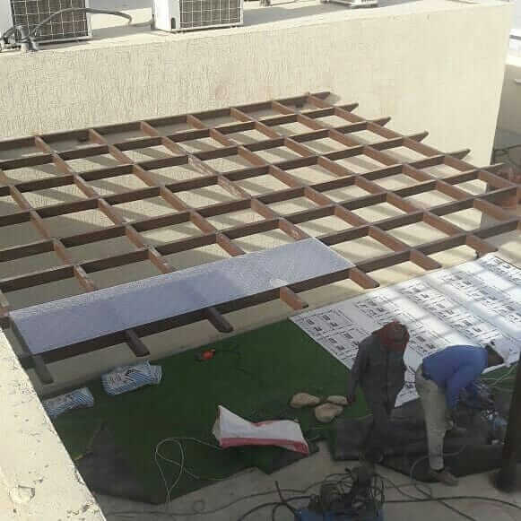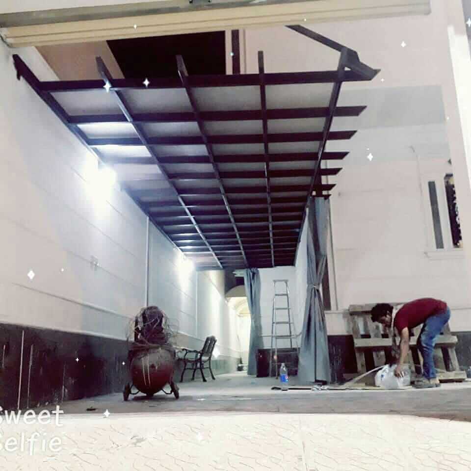 ويقوم العمال بتصميم البرجولة على حسب رغبة العميل دون تأخير أو تأجيل