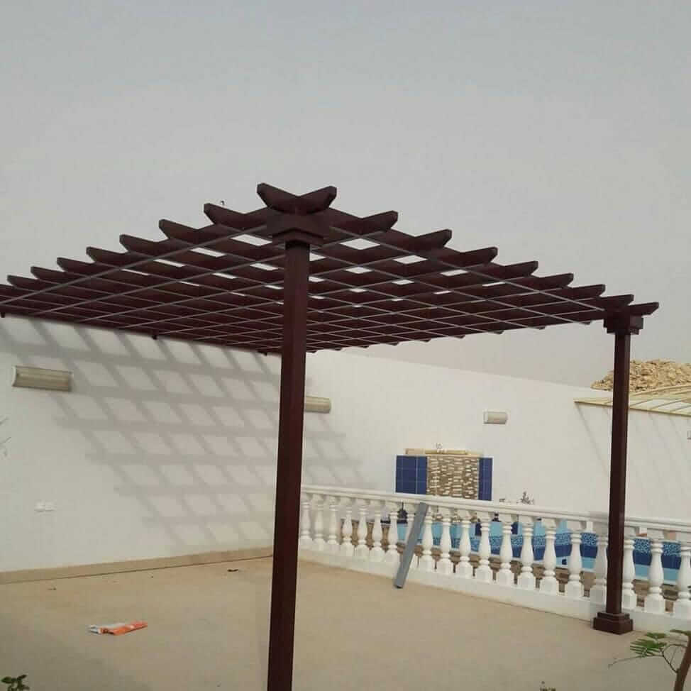 - الخشب العزيزي منه يتم عمل أفضل البرجولات الخشبية.